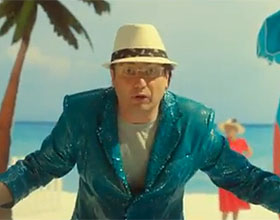 Ono je dano u vidu plaže, jasno, dok je lirski subjekt autoreferencijalno uparađen u blještavi tirkizni kostim; ironijska poetika dirigiranog ljetnog kiča također je maksimalno iskorištena, s morski oslikanim studijskim kulisama, s umjetnim suncem i sempliranim kliktanjem galeba, s plastičnim palmama i obiljem ženskih guzica i sisa koje, ajde, valjda ipak jesu prave, kao i pijesak u podlozi i očima.