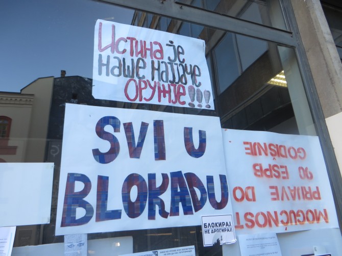 Filozofski fakultet u Beogradu jedini je ostao u blokadi, jer je rukovodstvo fakulteta odbilo prihvatiti njihove zahtjeve i sve do prije nekoliko dana razgovarati s njima. Sada ističu da su ispunili većinu zahtjeva, ali ne i one glavne. Uprava, uz to, blokadu smatra nedemokratskom i nelegalnom okupacijom šačice prosvjednika. "Najprije nam je rukovodstvo fakulteta proglasio divljacima koji sjede na prljavim hodnicima. Onda su nas optužili da smo manjina koja terorizira veći dio studenata i profesora koji žele normalno funkcioniranje fakulteta, da bi nam potom predbacili da nas 'vode' pojedini neokomunisti i anarhisti. To su neistine. Ovdje nema vođa, ideološke obojanosti blokade ili političkog parolašenja. Svatko može nazočiti zborovima i izraziti svoje stavove i argumente, ali ne u ime nekakve političke ili druge organizacije“, ističe naš sugovornik.