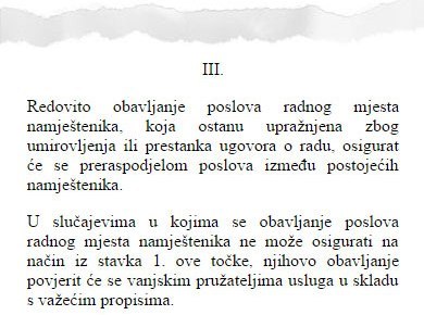 To znači da Vlada odlukom o zabrani zapošljavanja, u dijelu koji se odnosi na namještenike, pogoduje privatnim tvrtkama, koje u slučaju upražnjenog radnog mjesta namještenika u državnom tijelu jedine mogu preuzeti obavljanje poslova radnog mjesta na kojem je takav namještenik radio.