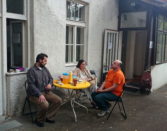 Za našeg posjeta Dnevnom boravku za beskućnike ondje je bio i Tihomir, bivši beskućnik, koji je i nakon pronalaska posla ostao pomagati Danijelu i Marijani. "Unatrag nekoliko godina, dok sam živio u Samoboru, spavao sam na autobusnom kolodvoru. Gospođi u Centru za socijalnu skrb, koja vjerojatno i dalje tamo radi, rekao sam – samac sam, meni treba samo šupa i lopata. Šupa da u njoj živim i lopata da njome zaradim kruh. Rekla mi je samo – ne može!", priča Tihomir. Najveći su mu problem u traženju posla, potvrđuje, bile predrasude poslodavaca Među beskućnicima ima i cijelih obitelji, no ne žele se pojavljivati u Dnevnom boravku i prihvatilištima jer ih je strah da će im Centar za socijalnu skrb oduzeti djecu ako bi saznali da je beskućnik. Bio je to začarani krug: "Beskućnik sam bio jer nisam imao posao, a posao nisam mogao dobiti jer sam bio – beskućnik".