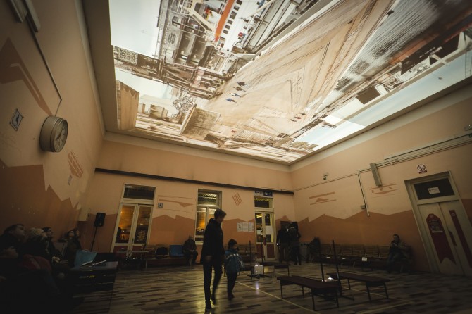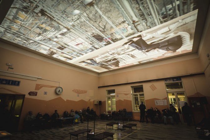 Željeli smo ga iskoristiti za site-specific rad koji bi poput javnog događanja pozvao građane na kolektivno čekanje i promišljanje tog i okolnih prostora, njihovih sadašnjih stanja i potencijal. Kroz prozore čekaonice mogu se vidjeti dijelovi željezničkih perona, luke, dizalica, silosa, skladišta, no željeli smo otvoriti novi 'prozor' u stropu, odnosno drugačiju perspektivu na ostale dijelove tih prostora i njihove svakodnevice. Za nas već sam čin provođenja vremena u interijeru čekaonice željezničkog kolodvora mimo onog ‘logičnog’ razloga vezanog uz prijevoz, slušajući zvučne soundscapeove o obližnjim željezničkim i lučkim eksterijerima te gledajući uvis prema jednom stropu i sadržajima koji su na njemu privremeno projicirani, otvara mogućnosti formiranja novih priča o gradu – o čekanju, polasku, možda i cilju.