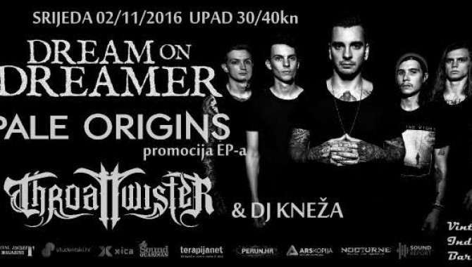 THROATTWISTER je metal bend iz Zagreba osnovan 2007. godine. Glazba koju ostavlja iza sebe mješavina je energičnih rifova, jumpdafuckup ritmova, monstruoznih vokala i zaraznih brejkova. Uz pregršt koncerata odsviranih diljem Hrvatske, bend svoje iskustvo također potvrđuje dosad izdanim albumom Cold Images i EP-om Humanity. Postavu benda čine Nikola (bubnjevi), Domagoj (bas), Domagoj (gitara), Bruno (gitara) te Goran (vokali). Throattwister i dalje visoko drži ljestvicu u nekonvencionalnoj metal sceni zbog karakterističnog stila glazbe i mješavine raznih metal stilova ukomponiranih u savršeno podmazani stroj koji zvučno gazi sve pred sobom. U odnosu na prošlogodišnji nastup u punom Vintageu, za ovu priliku momci najavljuju izvođenje i nekih novih stvari koje će se naći na idućem studijskom izdanju!