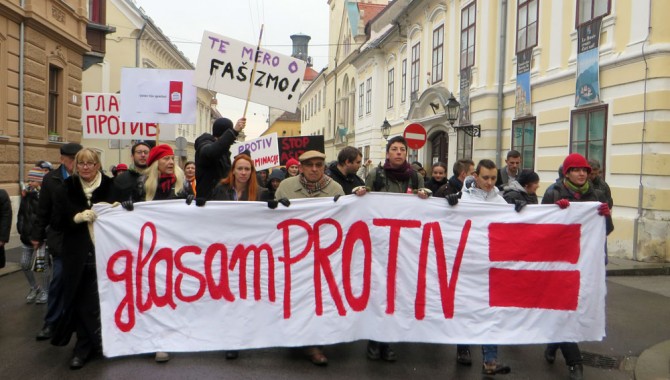 "Homoseksualnost nije izbor, ali mržnja jest!", "Čija prava su sljedeća?", "Protiv fašizma", "U ime ljubavi", "Ja imam dvije mame", "Гласам против"...samo se neki od brojnih transparenata koje su okupljeni građani nosili zagrebačkim ulicama.