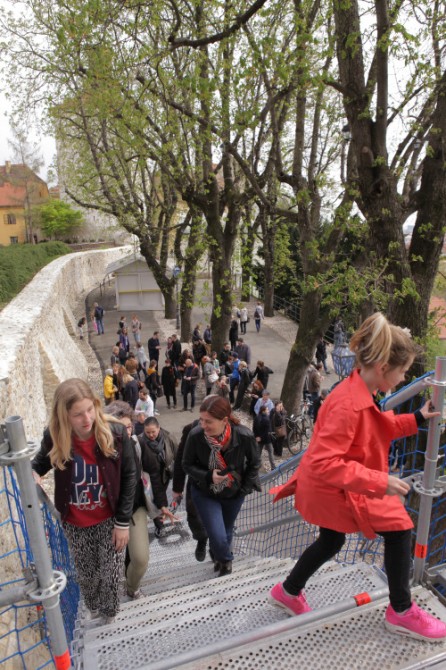 Ta veza ima i svojevrsno povijesno utemeljenje budući da je na jedom starom Zelmanovom prikazu Zagreba upravo na lokaciji bedema vidljivo široko stubište jedne od tadašnjih palača neposredno uz kulu Lotrščak. No, bitno važnije od toga čine mi se aktualne, nove, okolnosti koje su odredile da danas tamo postoji uređeni javni park te važno šetalište i spomenuti planovi njegova uređenja. Lansiranjem ideje povezivanja na tome potezu, ta se mogućnost nastoji učiniti vidljivom kako bi danas-sutra negdje tamo možda došlo do stvaranja pješačke komunikacije s rješenjem koje će uvažiti sve specifičnosti mjesta. Pritom je, jasno, imperativ očuvati i ne u bitnome remetiti bedem, a takva su rješenja svakako moguća.