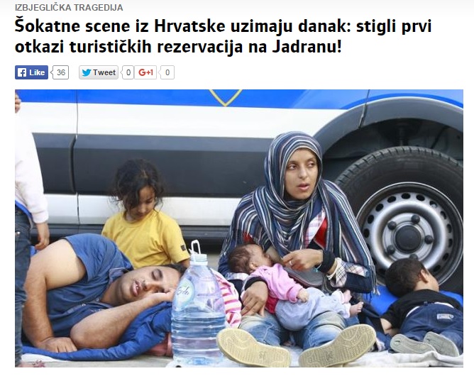 Jedna od luđih teza koja se pojavila vezana uz izbjeglice je ta da humanošću pilimo granu na kojoj sjedimo - turizam. Plasirao ju je prvo ili među prvima Anto Đapić, a ovih su je dana krenuli propagirat mediji. Prvo Slobodna Dalmacija, koju danas prenosi Poslovni dnevnik i Direktno.hr, javljaju kako prvi turisti navodno otkazuju rezervacije zbog izbjeglica. U tekstu ne navode točne izvore nego da turističke agencije ne žele javno govoriti o tome. Ovakvih će tekstova vjerojatno biti i dalje, jer je turizam jedina grana koja u Hrvatskoj još preživljava pa nije čudno da se širenje straha usmjerava prema ovom sektoru.