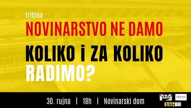 Novinari u Hrvatskoj danas rade u prekarnim uvjetima. Radno-pravna nesigurnost i narušeni profesionalni standardi u medijima ugrožavaju dostojanstvo profesije, ali i ljudsko i radno dostojanstvo novinara. Nužno je stoga otvoriti temu kolektivnih ugovora u novinarstvu i osnažiti pojedince i novinarske organizacije za kolektivno pregovaranje. Osim o radnim pravima novinara, na tribini će se razgovarati i o autorskim pravima novinara u okviru Europske direktive o autorskim pravima, s naglaskom na nužnost postizanja dogovora s s monopolističkim platformama i nakladnicima. Govornici će se također osvrnuti na aktualno stanje u Hrvatskoj, posebice u kontekstu novinarskih sloboda i napada na novinare.