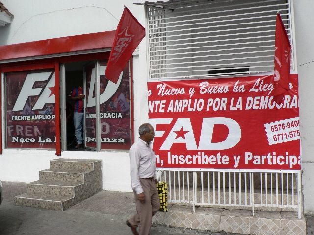 Osim Frenadesa, koji ujedinjava široke sektore panamskog društva, odlučili smo pokrenuti stranku Opća fronta za demokraciju (FAD). Naš je prijedlog stvaranje instrumenta koji bi predstavljao alternativu, pravičnost i socijalnu pravdu, i koji bi bio usmjeren k reformi zemlje putem prvobitnog Ustava. Uspostavili smo sjedište u glavnom gradu, a sad smo u procesu prikupljanja potpisa. Već imamo 20 tisuća pristupnika, a potrebno nam je 64 tisuća da bi pred izbornim vlastima bili službena stranka. Iako je u Panami proces upisivanje nove stranke prilično kompliciran, FAD je jedina politička formacija, osim potpuno protudemokratskog Izbornog zakonika, koja je do dan danas uspjela održati status "stranke u nastajanju", i uvjereni smo da ćemo moći pristupiti nacionalnih izborima 2014.