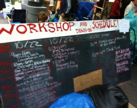 Usprkos zlim jezicima, koji vole tvrditi da anarhizam i direktna demokracija ne mogu funkcionirati, okupacija Zuccotti parka u mjesec dana stvorila je dobro organizirani grad-državu na golom betonu, bez pitke vode, električne energije ili goriva. Sredinom listopada usred parka funkcionira kuhinja koja 24 sati dnevno besplatno servira hranu svakom tko stane u red. Donacije pristizu danonoćno: plenum sredinom listopada raspolaže sa pola miliona dolara položenih na račune ne-vladine organizacije Alliance for Global Justice (Savez za Globalnu Pravdu) iz Tucsona (Arizona), koja se inače najviše bavi socijalnom pravdom u Centralnoj Americi (ukupno je sakupljeno preko 600 tisuća dolara, na dan pisanja ovog teksta još uvijek ima oko 400 tisuća na računu). Friške pizze se neprestano donose (prijatelji okupacije iz cijelog svijeta naručuju pizze telefonom da budu isporučene prosvjednicima).