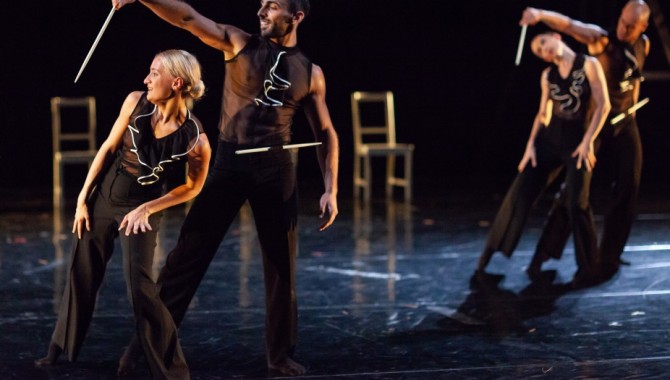 Stavljajući u središte koreografsko-dramaturškog promišljanja skladateljev allegro karakter i dirigentsku gestu, autorski se tim odlučio za reduciranu i asocijativnu scenografiju, koja je mjestimice u funkciji i plesačkih rekvizita, a koju čini deset stolica s po jednom osvijetljenom linijom s prednje strane, što zajedno s crnim, uniformiranim i elegantnim kostimima donosi efektnu sugestiju ideje orkestra.
