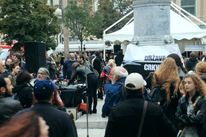 "Zapamtimo da ljudi koji idu u crkvu imaju više zajedničkog s ljudima koji ne idu u crkvu, nego s onima koji žive u crkvi", završne su riječi s prosvjeda.
