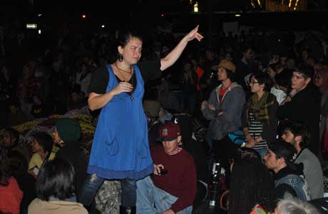 Za razliku od mnogih koji su na proteste došli primarno ogorčeni američkim korporacijama i osiromašenjem širokih slojeva stanovništva, Mary Lue ne vjeruje da ekonomska nepravda može biti riješena unutar kapitalizma. Susreli smo je na štandu knjižare Revolution Books, usko vezane s organizacijom pomalo arhaičnog naziva: "Revolucionarna komunistička partija, USA". U parku je vodila jednu od diskusija posvećenih porijeklu financijskog i političkog problema. O svom manjinskom mišljenju unutar prosvjedne skupine, nam kaže: "Jedna od velikih stvari ovdje je da ljudi dolaze sa svim vrstama pogleda i pokušavaju razgovarati zajedno, razlučiti stvari i razumjeti svijet. Glavna stvar je Occupy Wall Street i mi mislimo da je to sasvim dovoljan zahtjev. Ljudi najviše dolaze mučeni financijskom razlozima: zbog banaka, zbog siromaštva, zbog gubitka kuća i poslova te općenito financijskih institucija koje kontroliraju naš život. Ljudi imaju različite brige koje donose ovamo. Ovo je mjesto koje raskida s potiskivanjem mišljenja i omogućuje ljudima da misle nove stvari - kako se izvući iz svega ovoga, koju vrstu društva želimo, da li moramo nastaviti živjeti ovako. Mnogi mladi ljudi kažu ne. I zato smo mi ovdje - kao revolucionarni komunisti - i govorimo da je sistem sam odgovoran u cijelom svijetu i pokušavamo pokazati ljudima da su korporacije unutar, a ne izvan tog sistema. Da, mnogo je različitih pogleda ovdje ali to je izvrsna stvar. Jer u ovoj zemlji predugo ne možeš misliti izvan kutije, ne možeš zapravo misliti o drugačijem svijetu. Sada ljudi jednostavno kažu 'ne' - stvari se ne moraju nastaviti na ovaj način. I imaju različita razumijevanja toga. Ali to je dobro, to je uvijek način na koji pokreti imaju šansu da naprave bilo kakvu veliku promjenu." Povijest ljevice je u Americi je povijest sistematskog lova na vještice. Koliko je opasno u današnjoj Americi biti revolucionarni komunist? "Gledaj: za mnoge ljude u ovoj zemlji opasno je jednostavno željeti živjeti; opasno je ako si mladić u Harlemu koji jednostavno hoda ulicom, opasno je za sve one ljude koje je policija ubila. Opasno je biti na dnu ovog društva, opasno je živjeti s crnom kožom. Opasno je za žene koje imaju neželjenu trudnoću i žele učiniti abortus u mnogim državama ove zemlje. Ovdje dolazi pitanje moralnosti i vrste svijeta koju ljudi žele. Ako ljudi žele drugačiji svijet, onda moramo izgraditi pokret koji ima šansu dovesti to u postojanje."