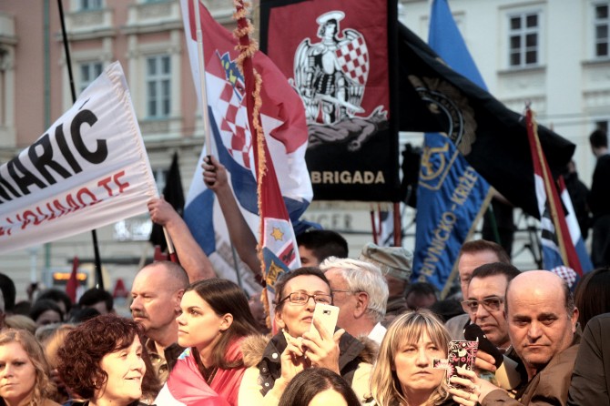 Plastično se to i ovih dana iskazuje nebuloznim prosipanjem bolesnih ideja/izjava šefice Hrvatske konzervativne stranke i europarlamentarke s liste "novog HDZ-a" (novog? - sic) notorne Ruže Tomašić u Vukovaru o čišćenju preostalih hrvatskih Srba iz "našeg dvorišta", vođe šatoraša Đure Glogoškog o tome da će do kraja svibnja "netko morati otići s Markovog trga kad tamo dođu hrvatski branitelji", pa i ZNA SE agitpropa o olujno-slavljeničkom "izvođenju HV-a na zagrebačke ulice".