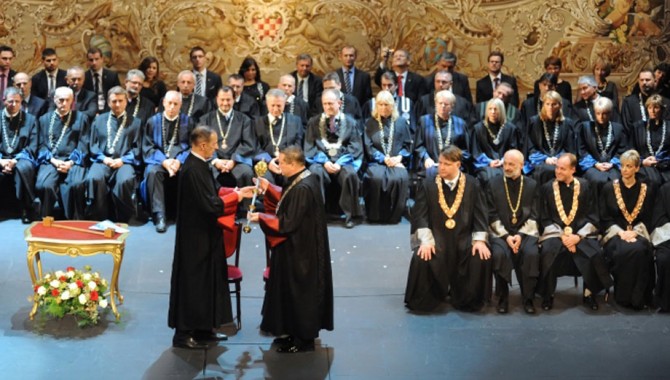 Dok su sitni kotačići mašine zaokupljeni mrvicama koje bi pokupili na natječajima uvjetovanima ideološkim profiliranjem i određivanjem poželjnih karakternih osobina, krupnije ribe znanstveno-obrazovne hijerarhije goste se svojim komadima kolača i kanapeićima na nepotrebnim ceremonijama poput inauguracije novog zagrebačkog rektora, zbog koje je u gradu nakratko došlo do prometnog kolapsa, a na kojoj je prisustvovalo oko 600 uzvanika, mahom jedinki hrvatske elite. Ukupna cifra koja je potrošena nije poznata javnosti, ali znamo da je novi rektor dobio odličan Ostavkom ministra ne dobivamo ništa jer se mora promijeniti cijeli sustav. Mora se promijeniti način upravljanja MZOS-om u kojem je vrhuška skoro pa jednako odvojena od vlastitih zaposlenika koliko od znanstvene, obrazovne i sportske zajednice kojom upravlja (i fiskalan?) popust pa je za dvoranu HNK umjesto 40 000 iz državne blagajne morao dati samo 20 000 kuna. Iako tada nije bilo jasno da će prosvjetari dobiti plaće za prosinac, novom rektoru ceremonija se ne čini pompoznom - ima i pompoznijih. To ne iznenađuje, jer ipak rektor, za razliku od ministra, jest biskup starokatoličkog ogranka kršćanstva, a samim time pretpostavlja mu se afinitet prema ritualima i odorama i sličnim stvarima kojima se muškarci u haljinama inače bave dok se igraju bogova.