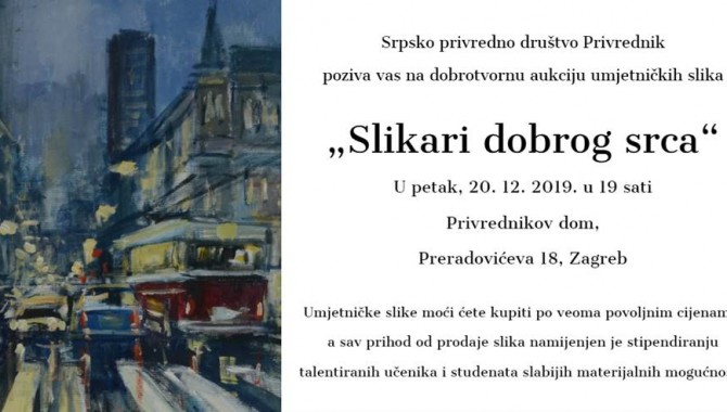 Potom, na aukciji organizatori ponude zainteresiranoj javnosti umjetničke slike po doista povoljnim cijenama, a sav novac od prodaje slika ide isključivo u dva Privrednikova fonda za stipendiranje nadarenih učenika i studenata slabijih materijalnih mogućnosti.
