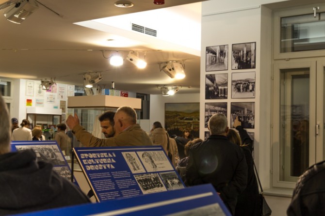 Na zidovima su postavljene fotografije velikog formata iz ranih pedesetih, vezane uz izgradnju i same početke rada tvornice, koje je ustupio Muzej Jugoslavije, te fotografije s obljetničkih proslava.