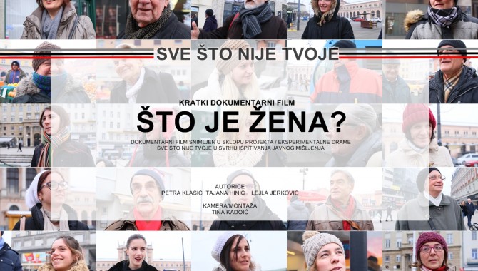 Kratki dokumentarni film Što je žena?, koji ovdje predstavljaju, istraživački je dio projekta. Autorice su Petra Klasić, Tajana Hinić i Lejla Jerković, dok kameru i montažu potpisuje Tina Kadoić. Ideja iza filma je prikazati presjek odgovora o položaju žena u Hrvatskoj, radi ispitivanja javnog mišljenja. Intervjui su snimljeni s pedeset slučajnih prolaznika.