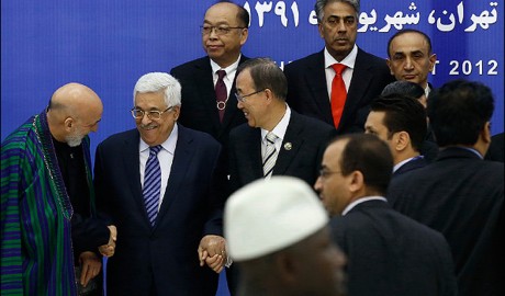 Iranci su, uz Mahmuda Abasa, na Samit pozvali predsjednika Palestinske uprave i Palestinske oslobodilačke organizacije (PLO) i Ismaila Hanijeha, prvaka pokreta Hamas proizašloga iz palestinske ispostave Muslimanskoga bratstva (MB) koji sada kontrolira Pojas Gaze. Hanijeh je nekadašnji premijer palestinske vlade nacionalnog jedinstva kojeg je Abas svojevremeno smijenio. Abas je protestirao i zaprijetio da se neće pojaviti u Teherenu bude li tamo i Hanijeh te se potonji zahvalio na pozivu i odustao. Međutim, odlazak Abasa u Iran naljutio je izraelskoga ministra vanjskih poslova, inače poznatoga jastreba, Avigdora Liebermana, koji je uputio pismo svim kolegama zemalja s kojima Izrael održava diplomatske odnose. Tvrdio je da se Abas, odazivajući se pozivu države koja zagovara "uništenje Izraela i prijeti mu novim Holokaustom", pokazao svoje pravo lice te se samim time, po njegovu mišljenju, diskvalificirao kao sugovornik u mirovnim pregovorima Izraela i PLO-a (vode se bezuspješno od 1993. godine). No, Izraelci nemaju drugog sugovornika među Palestincima i zato ga na sve moguće načine - financijskim ucjenama, policijskim operacijama po Zapadnoj obali, zaustavljanjem međunarodne pomoći upućene toj palestinskoj regiji i ovakvim napadima - pokušavaju učiniti "fleksibilnijim".