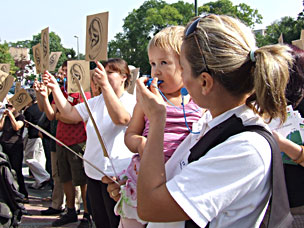 Mara Maras s Klarom, najmlađom prosvjednicom Mara Maras je došla na prosvjed sa svojom 2,5 godišnjom kćeri Klarom. Već petnaest godina živim u Resniku. Vratila sam se iz Graza jer sam mislila da je ovdje bolja kvaliteta života, a sad se moram bojati za zdravlje svojih troje djece, kaže ova Resničanka koja je imala priliku posjetiti spalionicu u Beču koju zagovornici gradnje jedne u Zagrebu navode kao primjer da tako nešto može funkcionirati. Spalionica u Beču nalazi se 70 kilometara od grada, a ovu u Resniku planiraju na 200 metara od naših kuća. Oko bečke spalionice nema kuća kilometrima. Resničani spominju i da gradonačelnik gradi stanove u blizini lokacije za spalionicu. Planira se dakle doseljavanje novih ljudi, a kvaliteta života 80 000 stanovnika područja Peščenica-Žitnjak već je smanjena zbog postojećeg pročišćivača voda i tvornice OKI. U ovo su vrijeme djeca u školi, a većina ljudi na poslu, zato nas nema više. Dopustili smo pročišćivač, ali spalionicu nećemo, kaže Mara Maras. Policija je spriječila prosvjednike da uđu u Poglavarstvo, dopustivši ulazak samo njihovim predstavnicima
