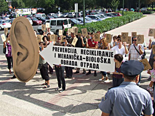 Šezdesetak aktivista udruga UZOR i Zelene akcije te građana Resnika prosvjedovalo je danas u 11 sati ispred zagrebačkog Gradskog poglavarstva. Kako je akcija najavljena za 11 h, u isto vrijeme kada se trebala održati sjednica poglavarstva, ista je odgođena za 13 sati. Slučajno ili ne, ali zastupnici i Bandić izbjegli su suočenje s nezadovoljnim građanima. Naime, riječ je još jednom bila o gradnji spalionice u Resniku.
