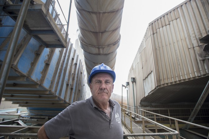 Ponegdje frcaju iskre, širi se tutnjava. Liftom se penje na 61 metar visine. Tu ga vrućina omata, temperatura zraka se penje prema 40 stupnjeva, lijepi se prašina za njegov pamučni, sivi, isprani T-shirt kratkih rukava s logom firme u kojoj radi - KEK. Prašina ulazi u oči, nos, usta. Sitne crne čestice ugljena. No Ismail ne nosi duge rukave, masku, naočale ni štitnike za uši.