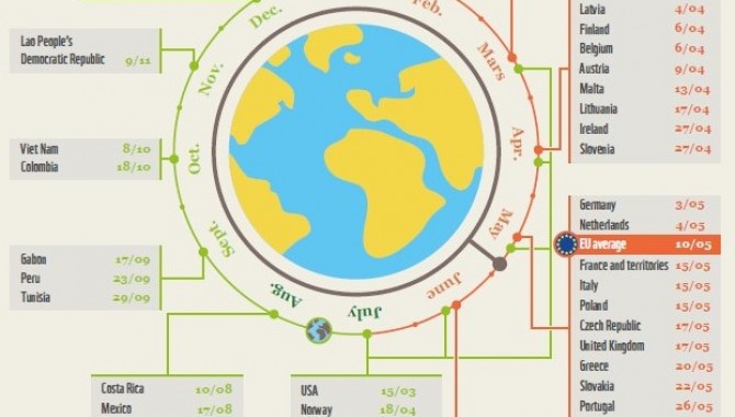 Prema najnovijem WWF-ovom izvješću Dan ekološkog duga EU: Život iznad granica prirode, nastalom u suradnji s Global Footprint Networkom, dana 10. svibnja 2019. čovječanstvo bi iscrpilo sve prirodne resurse Zemlje kada bi svi stanovnici svijeta živjeli poput stanovnika Europske unije. Stanovnici Hrvatske u ekološki će dug ući 1. lipnja, dok su stanovnici Slovenije u njega već zakoračili 27. travnja.
