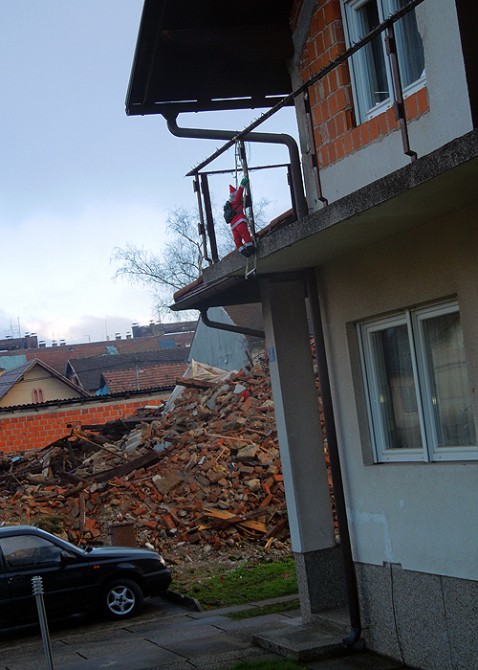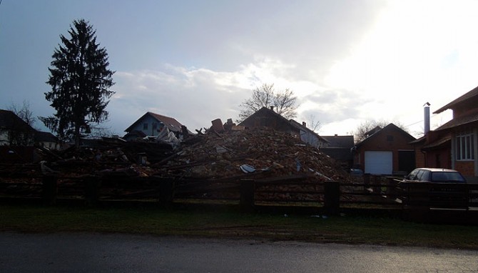 Siromaštvo i zapušenost najviše upadaju u oči, pa je u okolnim selima i zaseocima potrebno malo više pažnje kako bi se razabralo je li neka Čini se da su se nadležni na lokalnim razinama, kao i u Zagrebu, nekoliko dana od najjačeg potresa ipak dosjetili kako će najviše predizbornih bodova prikupiti budu li ostavljali makar privid zajedničkog naporakuća stradala u potresu, ili je ostala neobnovljena nakon posljednjeg rata, ili se s vremenom urušila nagrizena zubom vremena, silnom vlagom i neodržavanjem. Najčešći prolaznici su vatrogasci, pripadnici HV-a u društvu s napol uniformiranim lokalcima i pripadnici gorske službe spašavanja, koji svi zajedno uklanjaju ruševine. U obližnjem selu Majske Poljane, koje je najviše stradalo, već se postavljaju betonski temelji u koje se umeću drveni stupovi za nove kolibe ili tradicionalne drvene kuće od hrastovine kakvih ovdje ima na svakom koraku. Radovi se obavljaju u suradnji susjeda, dok se u blizini priprema gulaš, a negdje sa stane stoji obavezna gajba piva. Poneki mještani već su obavili najnužnije radove barem na stambenoj kući, dok su pomoćne zgrade urušene, pa sada mirno sjede u dvorištu i peku janjetinu da proslave taj uspjeh. Obnovu glavne kuće je prije dvadeset godina financirala norveška vlada, možda su zato štete na njoj ovih dana bile manje. U Glini, najveća je gužva ispred zgrade koja se zove Hrvatski dom, u kojoj je smješten ured socijalne pomoći pa građani prijavljuju potrebu za nepostojećim kontejnerima i oštećenja na kućama, dobivaju informacije vezane uz prehranu, pokušavaju dobiti građevinski materijal i agregate, kao i nužnu hranu i higijenske potrepštine. Upravo danas bit će pogreb dvoje članova obitelji Tomić, Franje i Marija, poginulih u potresu, čitamo s javno istaknutih osmrtnica.