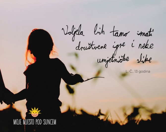 "Nismo usmjereni samo na 'klince' koji su na rubu, već i na one daleko ispod ruba siromaštva. Primjerice, to su djeca čiji roditelji nerijetko nisu u mogućnosti pružiti im ono što mi uzimamo 'zdravo za gotovo' - topli obrok ili voćku svakoga dana, jaknu i nove čizme za zimu, uključivanje u željenu slobodnu aktivnost. Naša ideja je da im kroz osmišljene aktivnosti, osiguravanjem emocionalne i socijalne podrške, pružimo priliku da promjene svoje živote, da im damo mogućnost da sami biraju što žele napraviti sa svojom budućnosti", kaže voditeljica programa Moje mjesto pod suncem Sandra Grozdanov.