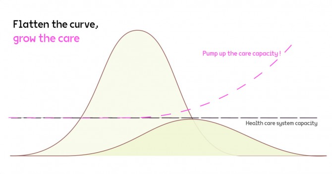 Tako je. Ako se zaraza naglo širi, onih 20% bolesnika koji trebaju intenzivnije liječenje i onih 5% koji trebaju kisik i respiratore zauzet će sve kapacitete i time im bolnice više neće moći pružiti nužnu skrb, čime izgledi za preživljavanje tih 5% drastično padaju ispod 50%. Istodobno, jednom kad kapacitet bude dosegnut, kao što je trenutno slučaj u Italiji, Španjolskoj i u nekim regijama drugih zemalja, onda bolnice više ne mogu pružiti pomoć ni bolesnicima s akutnim ili kroničnim stanjima koji nisu zaraženi, a zahtijevaju hitnu pažnju. Stoga je potrebno ublažiti krivulju porasta slučajâ oboljenja. Ta krivulja ne smije prijeći ravnu liniju kapaciteta sustava zdravstvene skrbi.