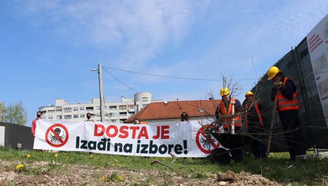 Poruka je to s današnjeg performansa kojeg su udruge izvele na zagrebačkom Trnju, na jednoj od rijetkih zelenih površina na ovom području, koja je prije godinu dana zamalo prenamijenjena u mješovitu, što bi omogućilo izgradnju stambenih i poslovnih zgrada. Da nije bilo odlučnog javnog otpora izmjenama Generalnog urbanističkog plana (GUP-a), danas bi ova i mnoge druge zelene površine možda već bile gradilišta, što su aktivisti prikazali postavljanjem građevinske ograde i table. Navedena akcija dio je kampanje "Dosta je! Izađi na izbore!" koju su početkom mjeseca pokrenuli Zelena akcija, Pravo na grad i desetak zagrebačkih udruga i građanskih inicijativa.