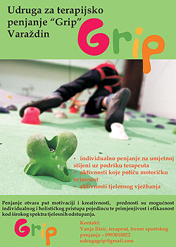 "Penjanje je 'čista prisutnost i meditacija u pokretu' te od tuda dolaze njegovi terapijski učinci kao podrška tjelesnim te kognitivno-emotivnim neravnotežama i nedostacima", objašnjava Vanja Ilisić, osnivačica varaždinske Udruge za terapijsko i rekreacijsko penjanje Grip. U Varaždinu se penju i djeca i odrasli, dolaze i iz Zagreba, Međimurja, Zagorja, jer ovdje ni cerebralna paraliza ili Downov sindrom nisu nikakva prepreka za sudjelovanje u sportu koji doživljavamo kao zahtjevan, ali i "kul", a osobama s invaliditetom često su takve aktivnosti nedostupne.