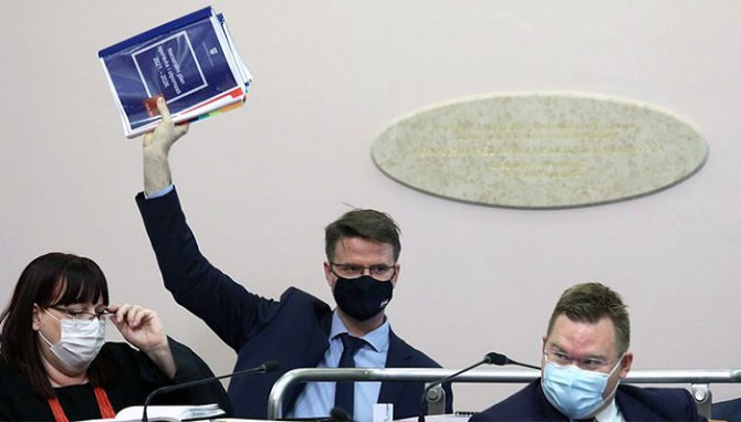 U Saboru je izbila jedna od većih blamaža kada se pokazalo da je Vlada zastupnicima poslala na raspravu samo sažetak Nacionalnog plana oporavka i otpornosti, a da im je integralni dokument, koji bi trebao sadržavati i konkretne projekte, ostao nedostupan. Premijer Plenković demantirao je optužbe da integralni dokument još nije niti napisan, kleo se da on postoji, ali da je zastupnike želio poštedjeti suvišnog čitanja. Netko iz vladajućih krugova je u sabornici, pred TV-kamerama, mahao ovećim uvezanim snopljem papira, kao dokazom da originalni dokument ipak postoji i da ga, eto, mogu čak i pogledati, dok se poput klatna ljulja slobodnim prostorom nad glavama zastupnika.