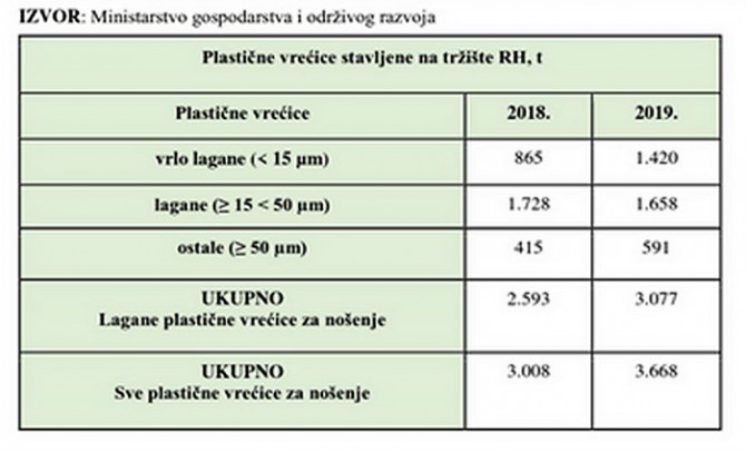 Što se službenih podataka tiče, smanjenje potrošnje laganih plastičnih vrećica zapravo se dogodilo, ali samo za 4 posto. Razlog tome je uvođenje spomenute mjere obavezne naplate početkom 2019. godine. Međutim, 4 posto nije ni izbliza dovoljno za ostvarenje Direktive, a zabrinjavajuće je da se potrošnja vrlo laganih vrećica značajno povećala (za čak 64 posto od kraja 2018. do kraja 2019. godine), što znači da se ukupna masa plastičnih vrećica na tržištu znatno povećala.
