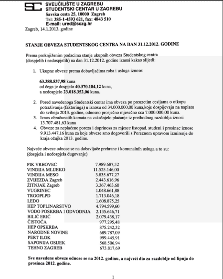 Iz Kolarićevog ureda odgovoreno nam je kako je "poslovanje SC-a Zagreb danas takvo da redovito prema svima ispunjava sve svoje financijske obveze u valuti" te da "Ministarstvo financija RH, Uprava za financijsko upravljanje , unutarnju reviziju i nadzor, sektor za financijski i proračunski nadzor u 2018. godini obavilo proračunski nadzor zakonitosti i namjenskoga korištenja proračunskih sredstava u Studentskom centru Zagreb, u razdoblju od 1. siječnja 2013. do 31. prosinca 2017. godine. Navedenim nadzorom nisu utvrđene nepravilnosti vezano za trošenje sredstava iz Državnog proračuna".